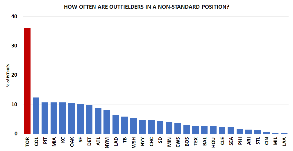 Outfield positioning matters, but most are in a standard position most of the times. Except the Blue Jays.