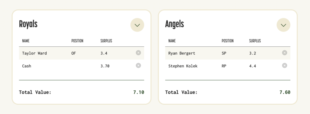 In this trade, we wind back the clock to July of 2025, when the Royals traded their backup catcher for two pitchers in Ryan Bergert and Stephen Kolek, both of whom saw some late season success in the Royals’ rotation. Kolek in particular can profile as both starter or reliever. The Royals have enough depth to absorb the subtraction of two players they didn’t have mid-season last, and I have to think they would have traded a backup catcher for Ward had he been available, no?